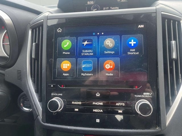 - Radio: Subaru STARLINK 8.0" Multimedia Plus System -inc: AM/FM stereo, HD Radio, single disc CD player w/MP3/WMA/CRR/RW file capability, multi-touch gesture high resolution display screen, voice activated controls, Bluetooth® audio streaming and hands-free phone connectivity, Bluetooth® hands-free SMS text messaging connectivity, Near Field Communication (NFC), iPod control capability, rear-vision camera display, SiriusXM All Access radio (4 months free trial/subscription required after), SiriusXM Travel Link (4 months free trial/subscription required after), smartphone integration: AHA, Android Auto, Apple CarPlay, Pandora, STARLINK cloud applications, 6 speakers, 3.5mm auxiliary input jack, dual USB A input charge ports, dual USB input charge ports, roof mounted antenna and audio/satellite connected services
